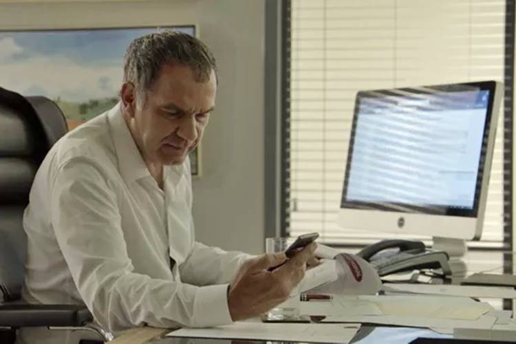 Em A Força do Querer, Eurico (Humberto Martins) recebe uma mensagem de texto anônima. O conteúdo é uma foto de Silvana (Lilia Cabral) saindo de um prédio após uma jogatina.