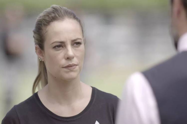 Em A Força do Querer, Jeiza (Paolla Oliveira) está treinando com Iron quando Caio (Rodrigo Lombardi) se aproxima e elogia o cão: “Seu parceiro é mesmo muito especial!”