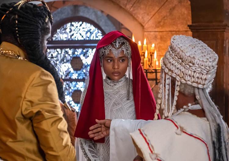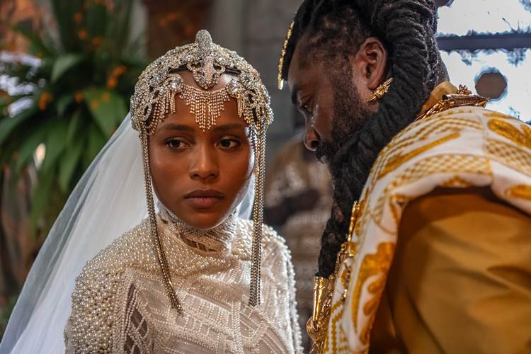 Antes de a cerimônia começar, Jendal espalhará mentiras para os visitantes, afirmando que o rei Cayman II (Welket Bungué) pretendia fugir com as riquezas do país, justificando assim sua deposição e a “piedade” de ter poupado a família real através do matrimônio.