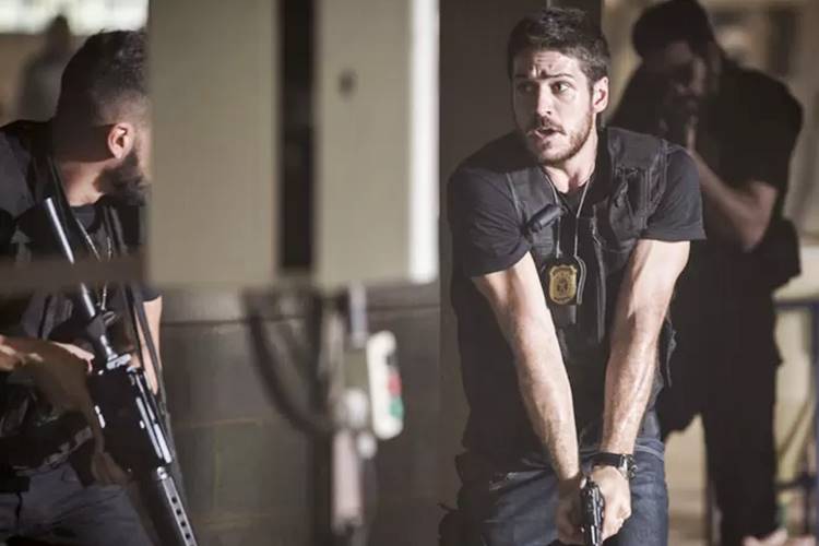 Na companhia de seus colegas de trabalho, Dante (Marco Pigossi) chega ao novo QG onde Tio (Jackson Antunes) e outros capangas estão escondidos.