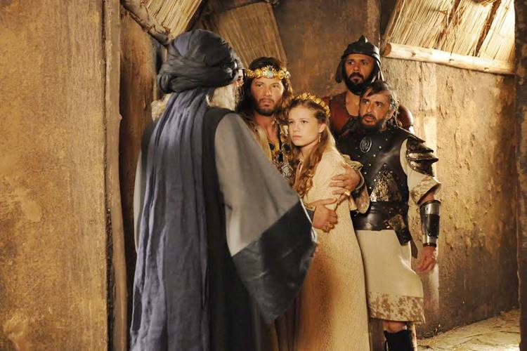 Em A Terra Prometida, Calebe (Milhem Cortaz), Otniel (Leonardo Miggiorin) e Elói (Claudio Gabriel) formaram uma falsa comitiva real para entrarem em Ai disfarçados de nobres do reino de Jerusalém. Os hebreus são surpreendidos com a chegada do verdadeiro rei Adonizedeque (Mário Frias) no palácio.