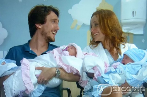 Quando o médico aparece carregando um bebê ruivinho no colo, Marcelo se emociona e pega o filho nos braços. “Foi tudo bem, doutor? Meu filho nasceu bem? Posso ver a Priscila?”, pergunta. O doutor, então, indaga se ele não quer ver os outros bebês. Todos se chocam: “O resto?!”