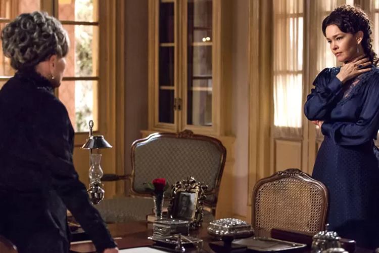 Vitória fica indignada com a afronta de Dorotéia e tenta expulsá-la do casarão, mas a rival reage e parte para a chantagem: “Se eu deixar esta casa, eu conto para Deus e todo mundo tudo que eu sei sobre a crueldade que cometeu contra seu próprio filho! Acabo com essa sua pose de grande dama!”. E as exigências não param por aí: ela ainda pede um dos palacetes da toda-poderosa: “É lá que eu pretendo morar depois que minha filha estiver casada, não vejo a hora de deixar para sempre este buraco chamado Campobello”.