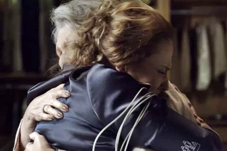 Emocionada, a antiga proprietária da Vinícola Ventura também se desculpa por suas atitudes do passado e, logo depois, dá um longo abraço na filha.