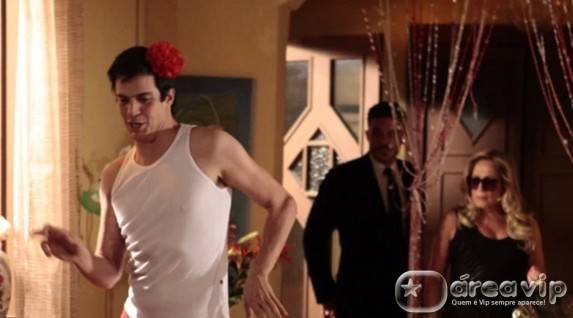 Com a visita inesperada, Pilar flagra Félix rebolando o popozão em plena sala de casa, vestindo somente a sua já famosa cueca vermelha. A cena pega a socialite de surpresa. Mas ela não muda de ideia, bate boca com a ex-chacrete e exige que o filho volte para casa com ela.