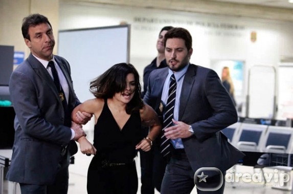 Aline (Vanessa Giácomo) conseguiu entrar no avião rumo ao exterior e está calmamente tomando seu champanhe, sem imaginar o que se passa do lado de fora. Paloma (Paolla Oliveira), Félix (Mateus Solano) e Bruno (Malvino Salvador) aparecem acompanhados do delegado Assis (Claudio Tovar) para tentar impedir a fuga da vilã.