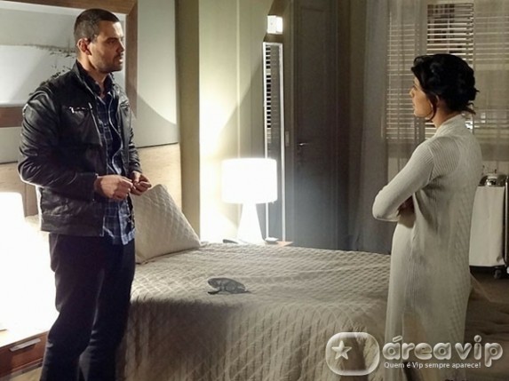 “Você está praticamente me colocando contra a parede, Fernando! Eu detesto isso! Você me conhece!”, avisa Miriam. Fernando não aceita a demora da jornalista para tomar uma decisão e se descontrola quando ela toca no nome de Rodrigo (Gabriel Braga Nunes). “Então está explicado! Você fugiu para não ter que me dizer na cara qual é a sua decisão, não foi? Porque é com o vaqueiro que você quer ficar! Admite!”, dispara.