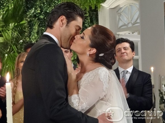Os convidados acompanham com emoção a cerimônia. “Claudia Collaboro aceita José Rubens de Sá?”, pergunta o juiz. “Aceito”, afirma Claudia, emocionada. “Sendo assim, eu vos declaro marido e mulher! Pode beijar a noiva”, declara o juiz. O casal é aplaudido intensamente pelos convidados.