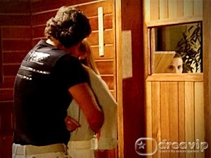 Carminha (Adriana Esteves) aproveita a confusão que se instaurou na mansão, com as brigas de Muricy (Eliane Giardini) e Leleco (Marcos Caruso), e se com encontrar Max (Marcello Novaes) às escondidas na sauna.