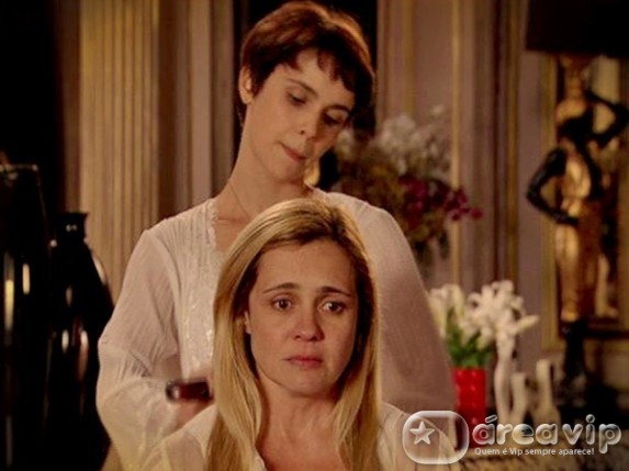 Nina penteia os cabelos de Carminha e deixa a patroa aflita