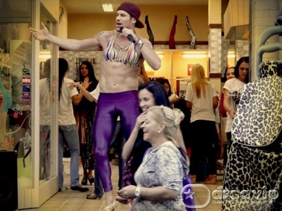 Para atrair a clientela, a periguete manda Darkson (José Loreto) se vestir com os modelitos da loja e fazer propaganda na calçada. “Moda feminina a preço de banana. Se fica bem em mim, imagina em tu que é um filé!”, anuncia ele. E não é que a estratégia de Suelen dá certo? Em pouco tempo a loja fica lotada de clientes!