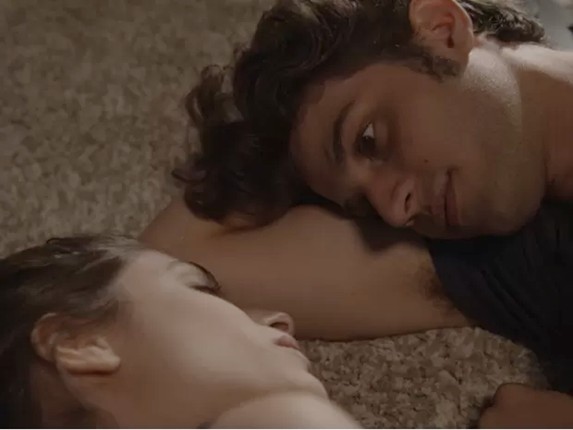 Laís (Luisa Arraes) confessa para Rafael (Chay Suede) que ainda é virgem. “Você não entendeu. É até o casamento”, reforça.