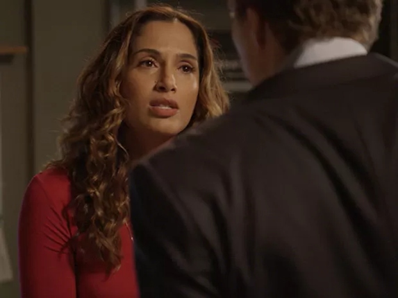 Regina (Camila Pitanga) está tão furiosa que nem sequer deixa Vinícius (Thiago Fragoso) falar. A comerciante já sai acusando o advogado pela prisão de Luís Fernando (Gabriel Braga Nunes): “O que você fez não tem perdão!”