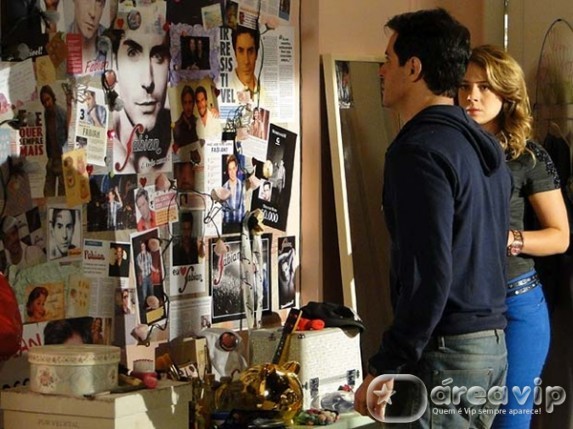 Rosário (Leandra Leal) e Inácio (Ricardo Tozzi) estão num love só! Mas essa fase dos dois pombinhos dura pouco. Para o azar da cozinheira, o namorado aparece em seu quarto para fazer uma surpresa, mas dá aquele flagrante. Coladas na parede estão muitas fotos do ídolo sertanejo Fabian (Ricardo Tozzi).
