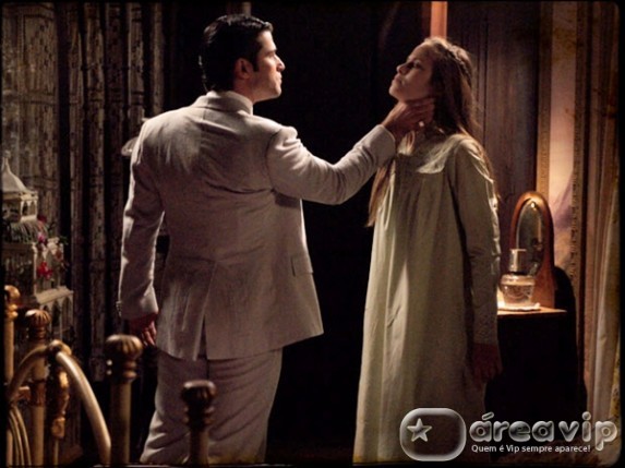 Ele entra no quarto da jovem gritando descontrolado. “Você é doida?! Não tem amor à vida? Contou pra Açucena que matei Cícero?!”.