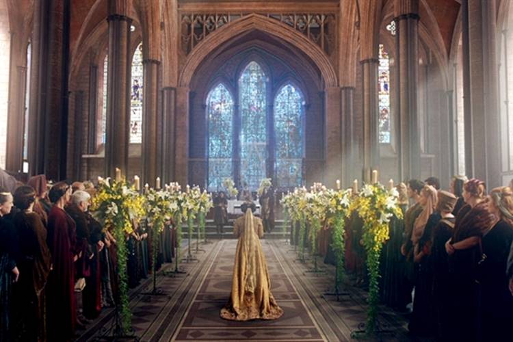 A sequência do casamento do rei de Montemor é intercalada com as cenas do matrimônio de Amália e Afonso. “Nos dois casos trabalhamos com a emoção, mas, para os takes de Rodolfo e Lucrécia tivemos esse desafio ainda maior para trazer a atmosfera de uma cena como esta. Mostramos fotos de como seria a igreja antes de começar”, lembra o diretor artístico Fabrício Mamberti.