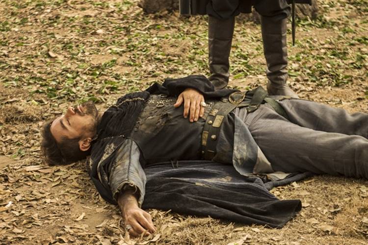 Otávio e sua comitiva o encontram em péssimo estado, com roupas chamuscadas e rasgadas e só o resgatam porque ele consegue balbuciar algumas palavras que chamam atenção do rei. “Eu… sou um nobre… de Montemor”, sussurra. “Neste estado? Pois que saia de meu caminho e volte para lá”, rebate Otávio, incrédulo.