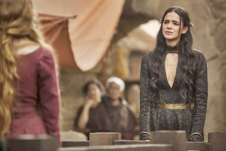 Catarina dá um leve sorriso e, ao ser questionada pelo juiz, Brice no corpo de Lucíola diz, emocionada: “Gratidão, meritíssimo. Eu protegeria a princesa Catarina nem que fosse com a minha vida!”