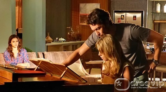 O namoro de Laerte (Gabriel Braga Nunes) e Luiza (Bruna Marquezine) é sempre cheio de surpresas e, para deixar a relação ainda mais animada, a jovem resolve fazer uma visitinha ao flat do amado sem avisar. Chegando lá, porém, ela dá de cara com Livia (Louise D’Tuani) e disfarça todo seu incômodo com a presença da pianista. À vontade, Laerte continua o ensaio e demonstra bastante intimidade com a nova parceira.