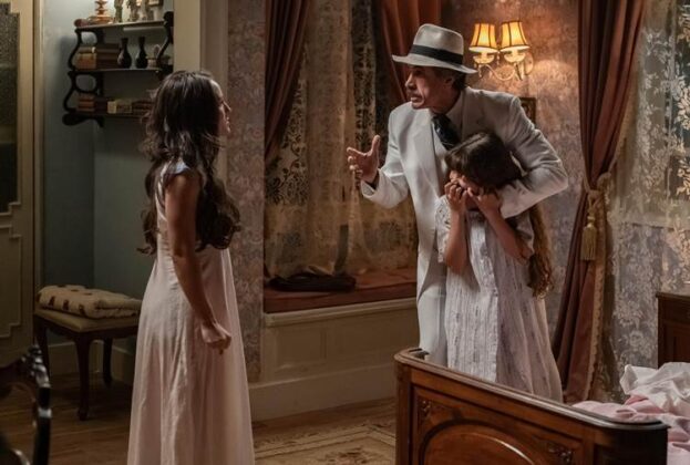 Depois da encenação, a vilã lança um comentário enigmático sobre a “sorte” de Candinho, que responde com sua habitual fé e simplicidade. Assim que ela se afasta, o matuto confessa ter sentido “algo ruim passar por ali”. De longe, Baronesa/Sandra observa a cena, visivelmente irritada, alimentando ainda mais sua rivalidade com o pai de Samir (Davi Malizia).