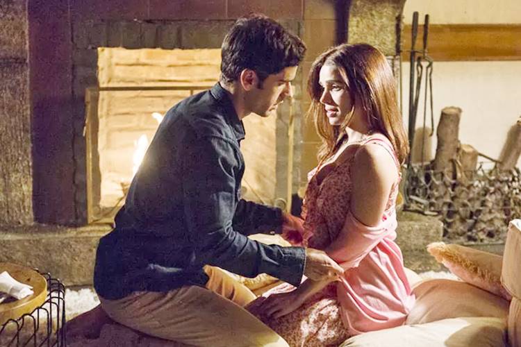 Aquecidos pela lareira do chalé, os dois comem fondue e conversam sobre o passado e as famílias, até que o publicitário se declara: “Aquela noite, na chuva… Que cê perdeu a