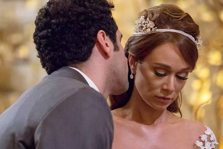 Depois de ter mais uma conversa séria com Beto, a noiva se desculpa com Apolo por ter duvidado dele, mas, para não perder a guarda de Carol (Bruna Griphao) e dos irmãos, decide se casar com o publicitário. “Vamo, Beto, vamo terminar as besteira que cê começou”, fala, sofrendo. Os dois, então, voltam para o altar, muito abalados, e oficializam a união.
