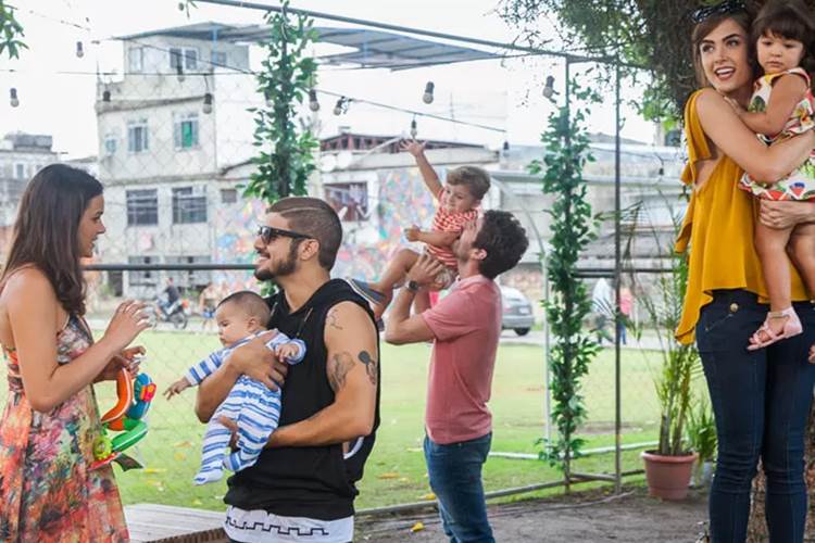 Os casais deixam para trás os conflitos que tiveram no passado e curtem juntos em Paraisópolis o clima de paz e felicidade com os filhotes.