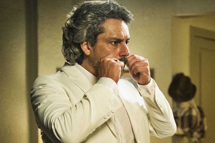 José Alfredo surpreende ao escolher um figurino bem diferente do que costumar usar. O “homem de preto” adere ao clima do réveillon e se veste de branco para a ocasião. Ísis aprova a produção do seu Comendador: “Gosto de você de qualquer jeito, desde que vivo”, brinca.