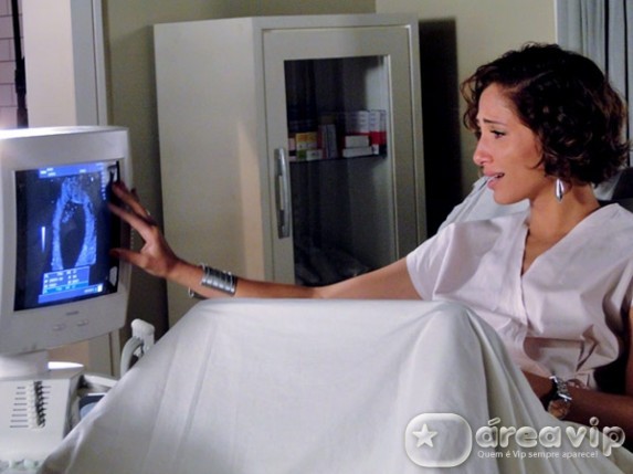 Sônia, a médica, orienta a executiva, que nos primeiros momentos não enxerga nada no monitor. Quando a ginecologista aponta para o embrião de oito semanas, Carol fica emocionada – e sem saber o que dizer.