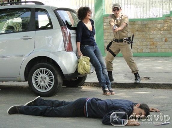 E, por sorte, depois que o executivo entrou e rendeu Wanda, e antes de ser vista dentro de casa, Neném conseguiu ligar para a polícia. Quando Henrique tenta escapar, levando Wanda como refém, os polícias chegam e anunciam: “Perdeu, bacana, larga a faca, solta a dona que você fica vivo!”
