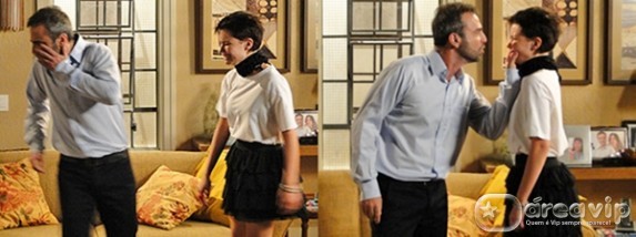 Leila, no impulso, dá um tapa na cara do pai e grita: “Eu não sou vagabunda!”