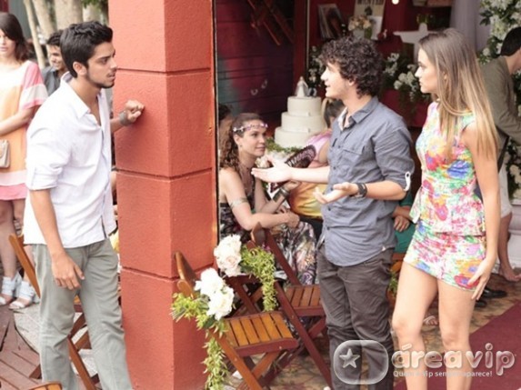 Até que, na fossa, a gata recebe o maior elogio de Bruno, que também está por lá, e muda de humor na hora. O problema é que Dinho não fica tão feliz assim e dá a maior prensa no universitário.