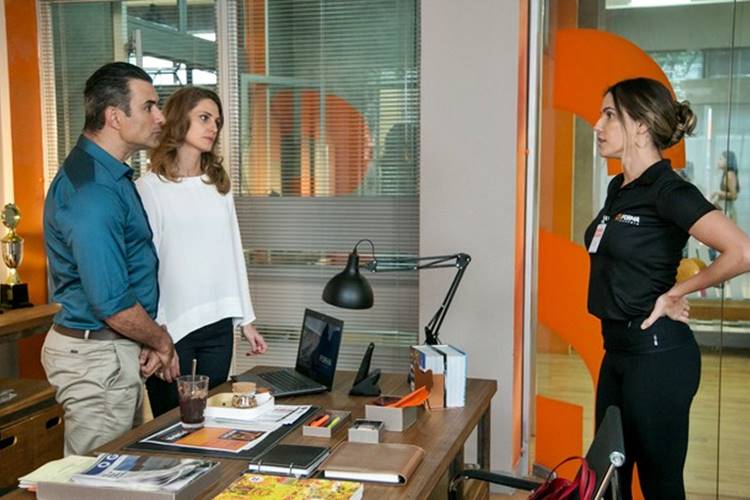 Em Malhação, inconformada com a decisão de Ricardo (Marcos Pasquim), que proíbe Joana (Aline Dias) de ficar a sós com Manuela (Milena Melo) e Juliana (Giulia Gayoso), Tânia (Deborah Secco) decide procurar o dono da Forma para uma conversinha. Quando a loira chega na sala do patrão, acaba flagrando Tita (Paula Possani) no colo de Ricardo, que quase derruba a namorada no chão quando vê a crush: “Pode falar, Tânia”.