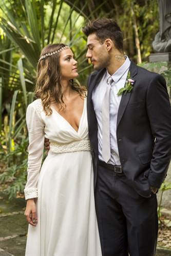 O clima de festa também esteve presente entre o elenco. Pamela Tomé, que se vestiu de noiva pela primeira vez para uma cena, conta que ficou emocionada por dar vida a esse momento da personagem. “É uma sensação única, incrível, indescritível. E eu casaria com esse vestido. Ele é maravilhoso!”, garante. O modelo segue a linha minimalista com detalhe de renda nas costas, sem muitos bordados. “Queríamos algo clássico, atemporal. Na história, Alina usa o vestido de noiva que foi da mãe, Monique (Leticia Birkheuer)”, explica a figurinista Sabrina Moreira. Lucas Lucco conta que está muito satisfeito com o resultado das sequências de Uodson e Alina e agradece a parceria com Pamela. “A gente interpreta Uodlina, um casal que briga muito, é cômico e se dá bem no final das contas. Gostei muito de fazer essas últimas sequências do Uodson: a despedida de solteiro, as discussões com a Alina, a correria pro casamento. Nosso entrosamento é muito importante para que tudo flua e fique legal para o público”, finaliza.