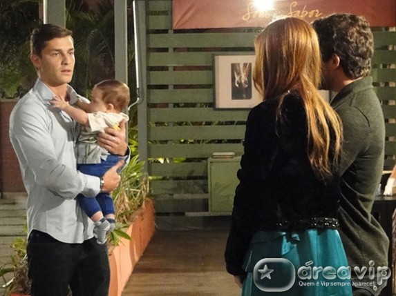 Alice (Marina Ruy Barbosa) e Renato (Fernando Roncato) saem do café de Marcos (Sergio Marone) e se deparam com Guilherme (Klebber Toledo), que carrega Amadeu no colo. A ruiva percebe que o ex-noivo está feliz com o filho e conta que vai se casar com o enfermeiro.