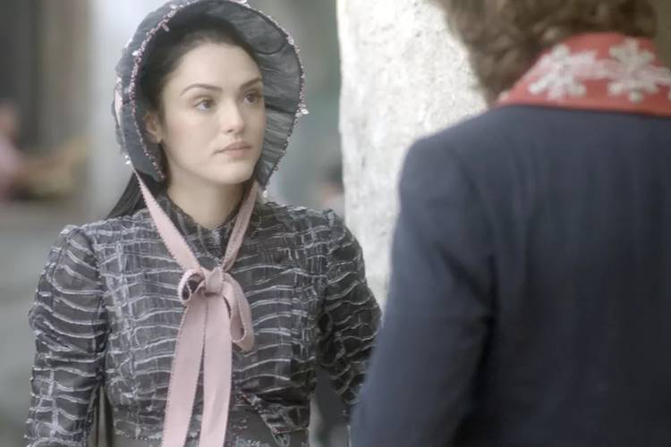 Em Novo Mundo, Joaquim (Chay Suede) encontra Anna (Isabelle Drummond) na rua e puxa papo. Gentil, elogia o que a professora tem feito pelas mulheres, já que ela tem dado aulas de ler e escrever de graça.
