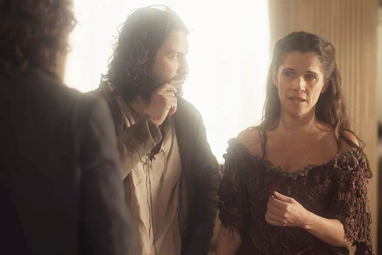 Em Novo Mundo, Elvira (Ingrid Guimarães) está nervosa, inventa que tem que voltar para a taberna, mas Hugo(César Cardadeiro) a encoraja a falar a verdade para Joaquim (Chay Suede). Os dois estão na Quinta à espera dele.