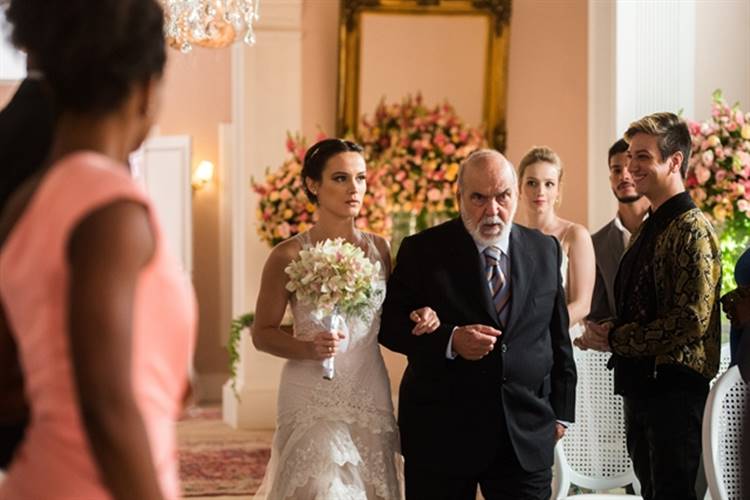Ele então se arruma na casa de Rafael (Igor Angelkorte) e ainda recebe ajuda de Laura (Bella Piero), que dá um toque final no figurino. “Queria estar impecável. Espero por esse dia há anos”, justifica o médico, um tanto inquieto. Enquanto isso, Clara, ainda que atrasada, insiste em procurar o rosário. Ela faz questão de entrar no salão com seu “talismã”. Beth (Gloria Pires) tenta ajudá-la, mas a neta de Josafá (Lima Duarte) pede que a mãe se apresse para acompanhar o avô até o local da cerimônia. Ainda assim, ela nota que Clara não está tão entusiasmada. “Tem certeza que quer casar com o Renato?”, questiona. Clara tenta amenizar e justifica: “Eu e o Renato nos damos muito bem. Eu vou ser feliz”, justifica.