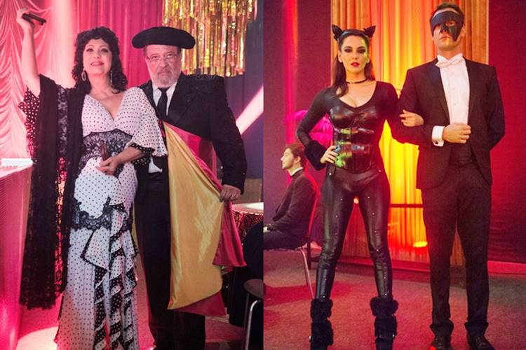 Foi justamente o artista, Clóvis Bornay, ícone do Carnaval carioca nas décadas de 70 e 80 e conhecido pelas fantasias de luxo que ele próprio confeccionava para se apresentar nos concursos e nos desfiles das principais escolas de samba do Rio, a maior inspiração para Fabio se preparar para a cena prevista para ir ao ar neste sábado, dia 10. Na história, Nick (Fabio Lago) e Marcel (Andy Gerker) disputam o prêmio de Melhor Fantasia no Baile de Gala em Palmas. O cabeleireiro e sócio de Nádia (Eliane Giardini) no Glitter Gloss veste “A Lenda do Tatu Encantado” e se apresenta com pompa perante os jurados. A cenografia e decoração do baile remetem aos grandes concursos dos anos 80 realizados no tradicional hotel Gloria, no Rio de Janeiro, com muitos globos espelhados e plumas. “Me emocionei realmente em cima daquele palco”, lembrou Fabio.