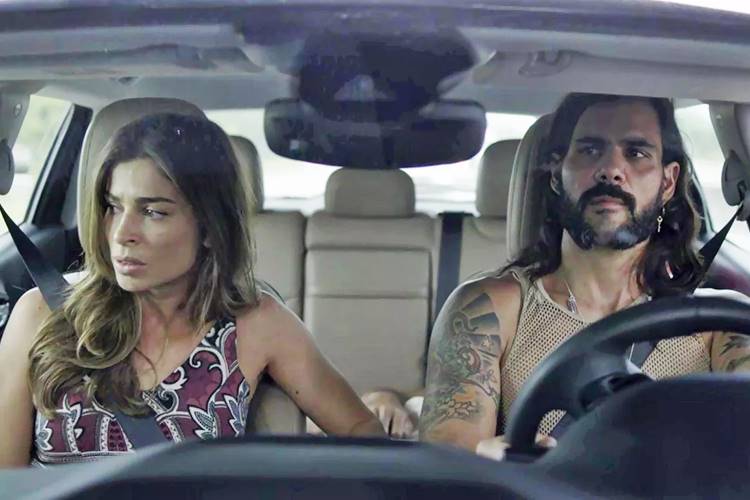 Quando Bruno (Caio Paduan) alcança o veículo em uma estrada, Mariano percebe e a perseguição fica tensa.