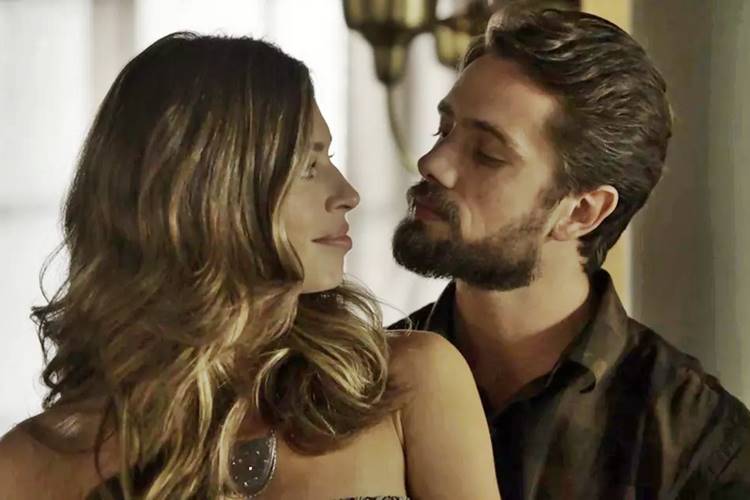 “Fez muito bem. Morri de saudades de você. Morri”, diz Lívia (Grazi Massafera), feliz ao recebê-lo.