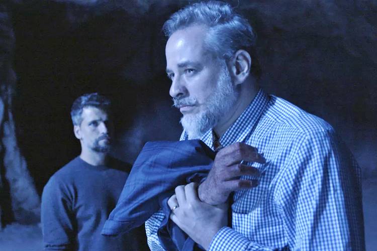 Em O Sétimo Guardião, Eurico (Dan Stulbach) bem que tenta escapar do teste de confiança imposto por Gabriel (Bruno Gagliasso), mas León humano (Eduardo Moscovis) impede a fuga do prefeito.