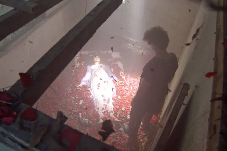 Murilo entra no local e estaca com a cena que encontra: Milu está ali, sem vida, deitada sobre centenas de pétalas de rosas, com um bilhete no peito avisando que “ainda faltam quatro”.