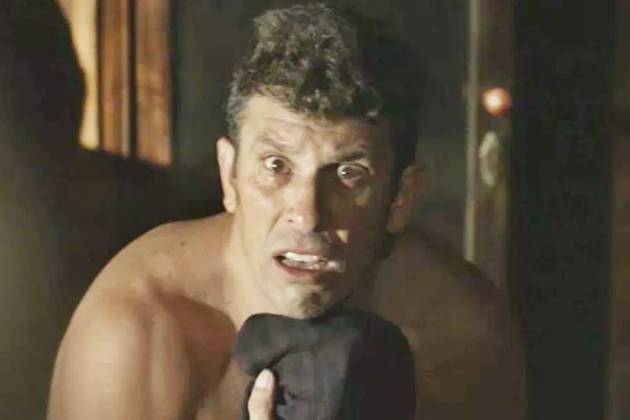 Em O Sétimo Guardião, o capítulo desta sexta-feira, 16/11, a personagem de Flávia Alessandra (Rita de Cássia) vai flagrar o marido (o Delegado Machado) vivido por Milhem Cortaz, dançando em frente ao espelho apenas de calcinha.
