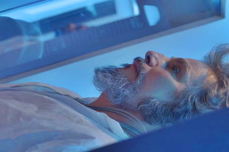 Deitado em uma capsula especial no tal laboratório, Dom Sabino vai despertar bem na hora em que Marocas (Juliana Paiva) pede por ele. Que sintonia!
