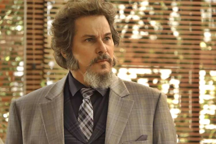 Em O Tempo Não Para, Dom Sabino (Edson Celulari) chega com Eliseu (Milton Gonçalves) depois de ter uma boa conversa com Cecílio (Maicon Rodrigues) e encontra Carmen (Christiane Torloni) pasma, segurando um papel nas mãos.