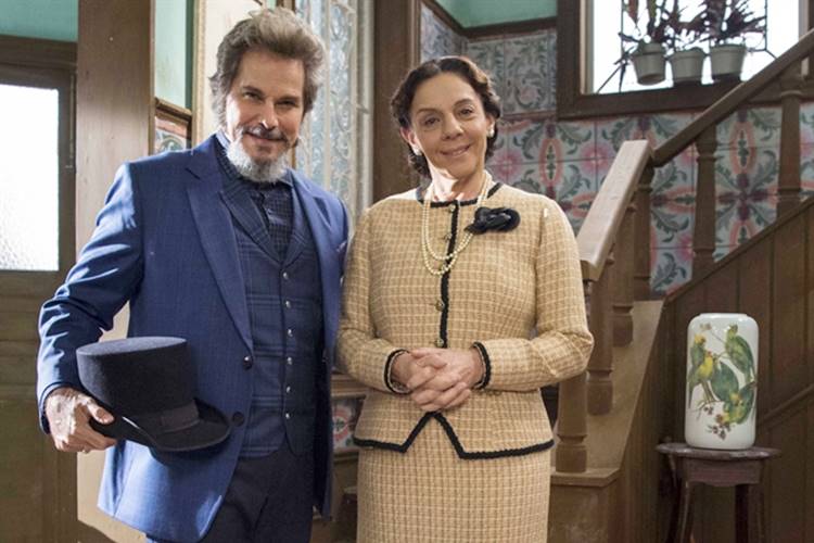 O patriarca da família não vai perder a elegância em um terno sóbrio e atemporal. “Trouxemos novos cortes e tecidos, mas não tão coloridos. Dom Sabino vestia muito xadrez e listras. Estamos usando todo esse contraste em camisas, coletes, gravatas, lenços e paletós. Vamos manter os coletes e a cartola”, explica Paula. Já Agustina (Rosi Campos) se rende aos tailleurs com laços, que fazem referência ao século XIX. “Deixamos a Agustina mais senhoril e recatada. É uma transição, então, ela não ia começar a usar os braços de fora de repente, por exemplo”, pontua a figurinista.