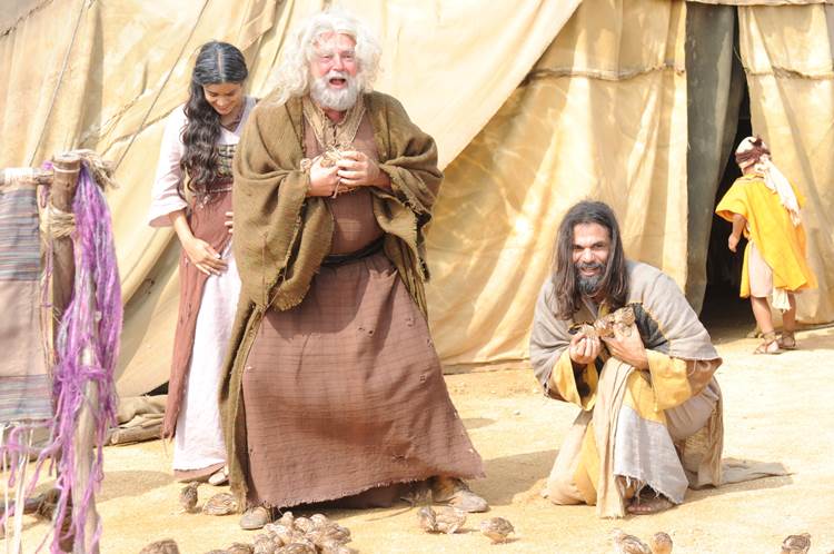 Após cruzar o Mar Vermelho, os hebreus começam a sentir o peso da liberdade. Exaustos de tanto caminhar, o povo começa a ficar sem comida e sem água. Corá (Vitor Hugo) cobra Moisés (Guilherme Winter) pela falta de comida. O libertador então ora e pede a Deus que envie provisões. Para surpresa de todos os hebreus, uma revoada de codornizes aparecem no acampamento. Em festa, o povo corre atrás das aves para captura-las e assim preparar um verdadeiro banquete para comemorar mais um milagre divino.