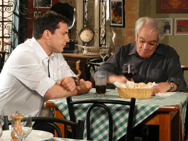 Na cantina italiana de Talarico, ele comenta com Diogo (Daniel Boaventura) o sucesso do plano contra Clara (Mariana Ximenes): “Está dando certo, a Das Dores e a Ednéa andam falando que você está apaixonado pela Clara. Eu estou fazendo a minha parte. Fico dizendo que não quero gracinhas entre os meus funcionários.”