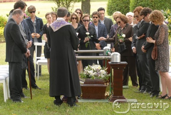 Gemma (Aracy Balabanian) e Bete (Fernanda Montenegro) se unem na dor ao sepultar Totó (Tony Ramos). A irmã mais velha, que criou o agricultor, e a mãe biológica não conseguem esconder a tristeza. Sem mais razões para ciúmes, elas buscam o apoio uma da outra enquanto permanecem em frente ao caixão. Na despedida, jogam rosas como uma última homenagem ao camponês tão amado por sua família. Clara (Mariana Ximenes) aparenta estar extremamente abalada e pede a companhia de Gemma e Bete, que recusam sua presença. Seus enteados, por outro lado, aceitam as desculpas da madrasta. Os filhos de Totó entendem que a morte do pai foi um acidente e se mantêm unidos durante toda a cerimônia.